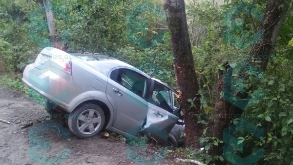 El coche se salió del camino y cayó a un desnivel, donde chocó contra un árbol, resultando lesionado su conductor, quien fue auxiliado por habitantes de ese ejido, quienes después lo llevaron en un vehículo particular al Hospital Básico de Aquismón.