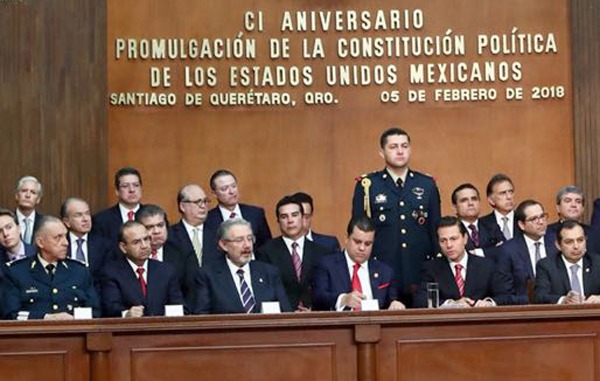 Tras asistir a la ceremonia del 101 Aniversario de la Promulgación de la Constitución Política de los Estados Unidos Mexicanos, que encabezó el presidente Enrique Peña Nieto en el Teatro de la República, el Gobernador del Estado Juan Manuel Carreras López, destacó que la fortaleza democrática de nuestro país se impulsa a través de las instituciones, siempre apegada a nuestra constitución.
