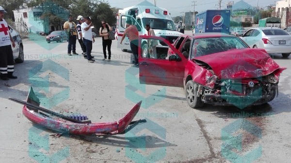 A bordo del Jetta rojo iban dos personas, la persona que lo conducía buscaba incorporarse a la Avenida Universidad con rumbo a la Valles-Tampico pero un autobús le tapaba la visibilidad y al ingresar a la circulación se originó el accidente con la camioneta.