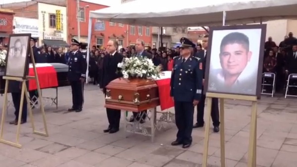 Esta mañana el Gobernador del estado, Juan Manuel Carreras López, el Fiscal del Estado, Federico Garza, José Guadalupe Celestino, titular de la Policía Ministerial montaron guardia en honor a los Policías Ministeriales muertos.