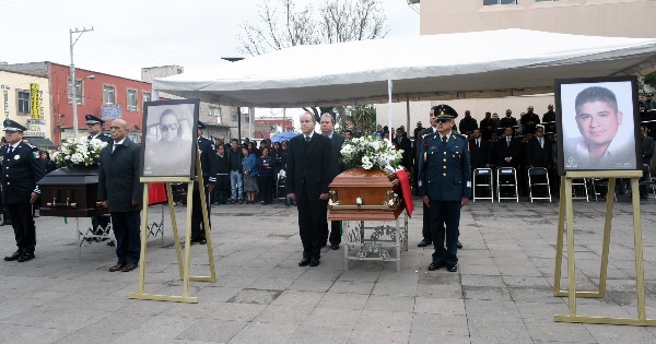 En la explanada de la Dirección de Seguridad Pública Estatal, con la presencia del Fiscal General Federico Garza Herrera y el Director de la Policía Ministerial del Estado José Guadalupe Castillo Celestino, familiares, compañeros y amigos dieron el último adiós a los tres agentes, a quienes se les reconoció por su valor, profesionalismo y la responsabilidad que siempre los caracterizó.