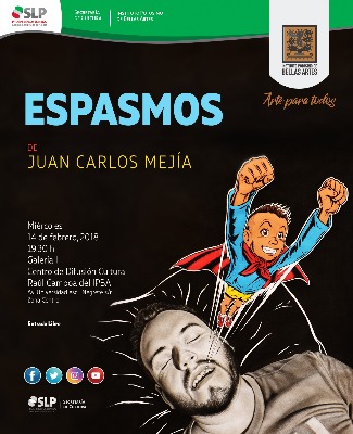 El Instituto Potosino de Bellas Artes (IPBA), invita al público a la inauguración de la exposición "Espasmos" de Juan Carlos Mejía, este miércoles 14 de febrero en el Centro de Difusión Cultural Raúl Gamboa, ubicado en Av. Universidad, esquina con Negrete, Centro, a un costado de la alameda Juan Sarabia, en punto de las 19:30 hrs, con entrada libre.
