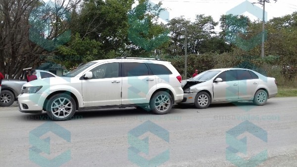 Un vehículo marca Volkswagen Bora color gris, se impactó contra una camioneta marca Dodge color blanco, en el kilómereo 1.5 de la carretera Valles-Mante.