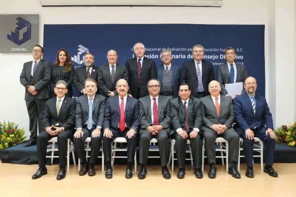 Y los miembros del Consejo Directivo del Centro Nacional para la Evaluación de la Educación Superior CENEVAL: doctor Mario Alberto Rodríguez Casas, director general del Instituto Politécnico Nacional; doctor Teófilo Ramos González, director de relaciones institucionales de la vicerrectoría académica del Tecnológico de Monterrey; doctor en Ed. Alfredo Barrera Baca, rector de la Universidad Autónoma del Estado de México; maestro Manuel Fermín Villar Rubio, rector de la Universidad Autónoma de San Luis Potosí; actuario Luciano Devars Dubernard, presidente del Colegio Nacional de Actuarios, A.C.; doctor Javier Nieto Gutiérrez, presidente del Colegio Nacional de Psicólogos, A.C.; doctor José Francisco Albarrán Núñez, vicepresidente de la Academia de Ingeniería, A.C.; doctor Joaquín López Bárcena, académico numerario y coordinador de programas universitarios de investigación en salud de la Academia Nacional de Medicina de México.; doctor en Quím. Rafael López Castañares, director general del Centro Nacional de Evaluación para la Educación Superior, A.C.
