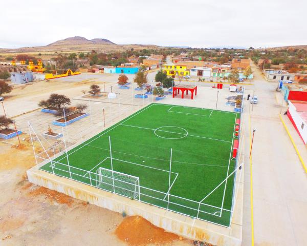 Con una inversión superior al millón de pesos se realiza esta obra, a través del programa de "Obras y Acciones", que fue instituido por la actual administración 2015-2018 y que logró concretarse en 2017 con esta construcción de la Cancha de Fútbol 7, la cual, servirá para la actividad física de toda la población, así como de espacio para el sano esparcimiento de las familias de la comunidad.