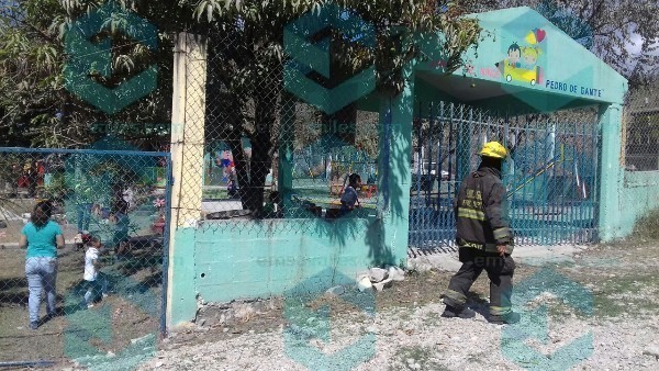 Un menor de cinco años de edad, andaba en el área de juegos del kinder Pedro de Gante del ejido Montecillos, cuando se le atoró un pie entre unos fierros.