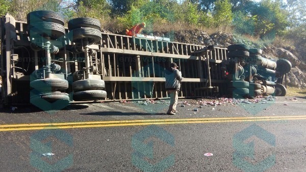 Debido a que se volcó un tráiler que transportaba cerveza, esto porque que el chofer no tuvo precaución al pasar por una curva.