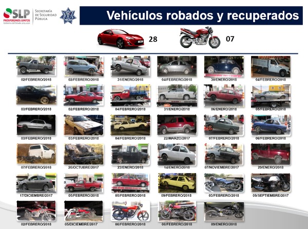 Como resultado de las acciones que realizan para fortalecer la seguridad y el combate al delito, la Secretaría de Seguridad Pública del Estado (SSPE) y la Fuerza Metropolitana Estatal (FME) lograron recuperar 28 automóviles y 7 motocicletas con reporte de robo, como resultado de la coordinación operativa enfocada principalmente en la Zona Metropolitana.