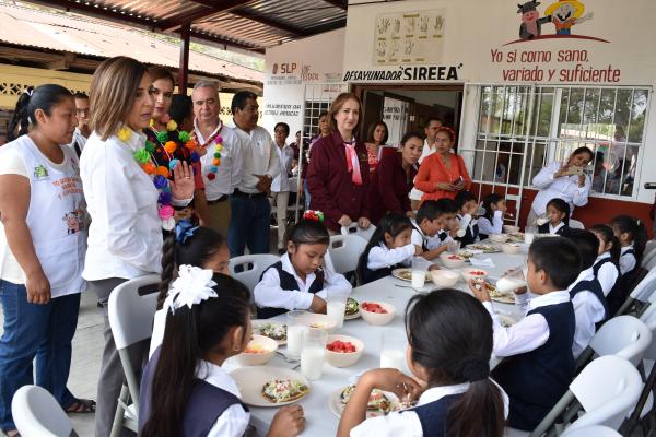 Apoyos en materia de salud, educación y productividad fueron entregados este lunes en Aquismón durante una gira de trabajo de la presidenta de la Junta Directiva del DIF Estatal Lorena Valle Rodríguez, el Secretario de Educación de Gobierno del Estado (SEGE) Joel Ramírez Díaz y el Secretario de Desarrollo Agropecuario y recursos Hidráulicos Alejandro Cambeses Ballina.
