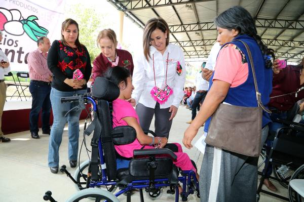 De igual forma, hizo entrega de bicicletas de la campaña Una Bici con Rumbo a estudiantes de secundaria de comunidades de Aquismón y una silla de ruedas a una paciente con parálisis cerebral infantil. También realizó un recorrido por la feria de servicios de la campaña Por Un Corazón sin Adicciones y la exposición de artículos de beneficiarias y beneficiarios del PESA.