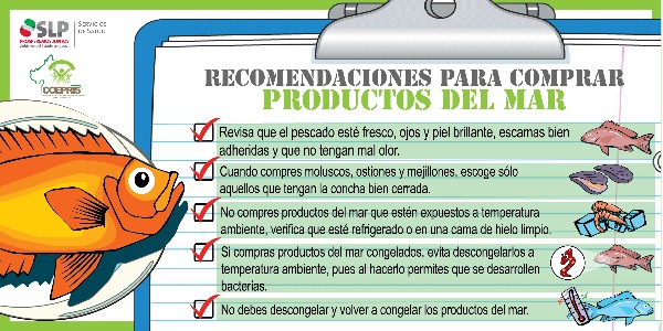 Los Servicios de Salud de San Luis Potosí, a través de la Comisión Estatal para la Protección contra Riesgos Sanitarios (COEPRIS), lleva a cabo en todo el Estado la vigilancia, control y fomento sanitario permanente en establecimientos de manejo, distribución y expendio de productos pesqueros, así como en purificadoras de agua, fábricas de hielo, así como en expendios de agua y hielo para consumo humano, mediante las acciones regulatorias y no regulatorias, principalmente en esta temporada de cuaresma en donde el consumo de los productos del mar aumenta significativamente; todo esto con el fin de que estos productos no represente un riesgo para la salud de la población consumidora.