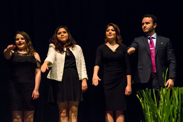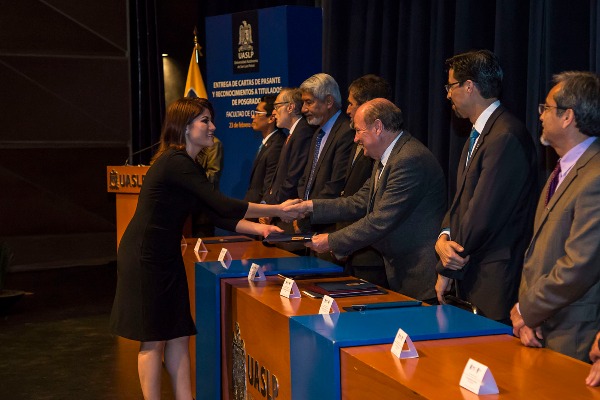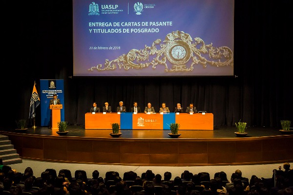 En la ceremonia se tomó protesta a cuatro egresados que obtuvieron promedio de 9 o más y que se titularon durante la ceremonia, además se entregó un reconocimiento a una estudiante que obtuvo doble titulación, por la UASLP y por City University of Seattle.