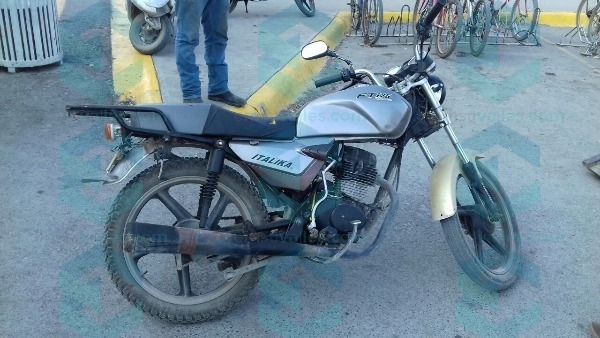 Esta tarde los elementos de la Policía Estatal del grupo de motopatruleros recuperaron una motocicleta marca Italika color gris, sin placas de circulación.