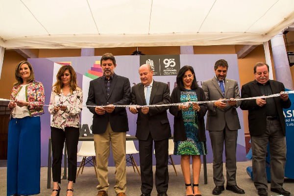 "De todos los instrumentos del hombre, el más asombroso es sin duda el libro, pues los demás son extensiones de su cuerpo", citó el Rector de la UASLP al escritor argentino Jorge Luis Borges el rector de la UASLP, al dar inicio en el Patio de la Autonomía del Edificio Central a la edición número 43 de la Feria Nacional del Libro 2018 organizada por la Universidad Autónoma de San Luis Potosí.