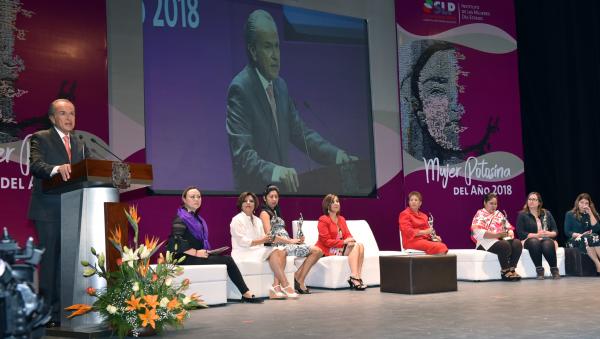 Como parte de la conmemoración del Día Internacional de la Mujer, el Gobernador del Estado, Juan Manuel Carreras López y la presidenta de la Junta Directiva del Sistema Estatal DIF Lorena Valle Rodríguez, entregaron el reconocimiento "Mujer Potosina del Año 2018" a 4 destacadas mujeres, además de realizar un homenaje y se entregó el galardón post mortem a la activista Irene Nava Bello.