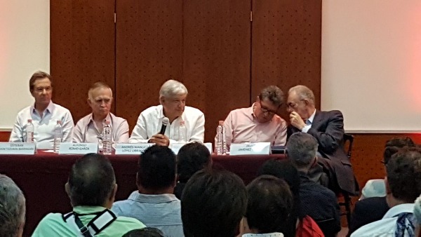 Acompañaron a López Obrador su Coordinador Económico Alfonso Romo, El ex Secretario de Gobernación Esteban Moctezuma, Ricardo Monreal, entre otros.
