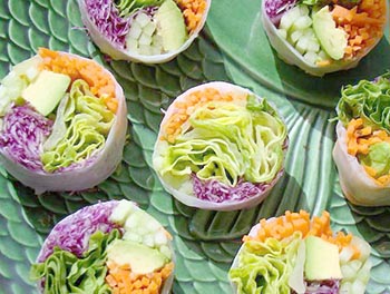 Extender una tira del pepino, colocar un poco de queso y unas cuantas tiras de zanahoria y apio.