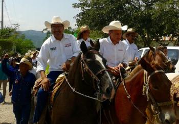En Santa María Acapulco, acompañando en su recorrido al tambien candidato por la gubernatura del estado, Juan Manuel Carreras López, participó en una tradicional cabalgata en compañía de jinetes de distintas organizaciones del municipio.