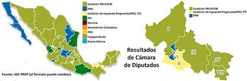 De acuerdo a los últimos datos del Programa de Resultados Electorales Preliminares, el Partido Revolucionario Institucional ganaría los Distritos Locales I, II, III, IV, X y XIV; el Partido Acción Nacional lo haría en VII, XI, XII, XIII y XV, mientras que el Partido de la Revolución Democrática lo conseguiría en V, VI, VIII y IX.