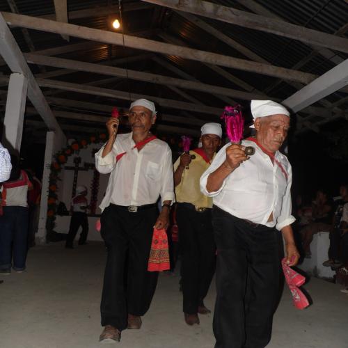 Son cerca de las 12 de la noche del día 31 de Octubre, y el comisariado ejidal, el jefe de la comuna, convoca a los protagonistas, el fiscal y sus ayudantes, los tekihuas, quienes se encargarán del lugar en caso de no encontrarse dispuesto el titular, son los 3 salientes y los 3 entrantes, quienes reciben el nuevo mando, primero con un brindis, con el tradicional aguardiente, típica bebida de esta zona indígena, no sin antes bendecir con ella la tierra, en sus cuatro puntos cardinales, para posteriormente, escuchar las instrucciones de su antecesores, quienes tuvieron la encomienda durante todo un año, y que dejan el puesto, pero más que eso, la responsabilidad y el honor de ser representantes, protectores de almas.