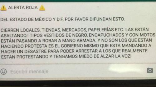 La fantasía se mezcló con las medias verdades y se difundió con rapidez en redes sociales, mensajería instantánea y diversos comentarios en Internet. Rumores de índole varia acompañaron la realización de actos vandálicos, que en principio se quisieron ver como parte de las protestas sociales registradas en calles y avenidas de diferentes ciudades del país, contra el aumento a los precios de la gasolina. El 2017 comienza con un escenario social muy complicado para la administración del presidente Enrique Peña Nieto, quien a decir de varios analistas, habita en una "burbuja" alimentada por sus más cercanos colaboradores, donde todo marcha bien y lo que ocurre es transitorio y no permanecerá.