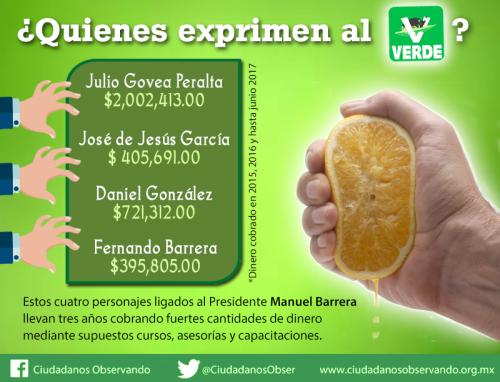 Y otro del club de los grandes beneficiados es el papá del Presidente del Partido, José Fernando Barrera Novelo, por supuestos servicios de asesoría en preparación de servicios financieros se llevó del partido verde en el lapso antes mencionado más de 395 mil pesos.