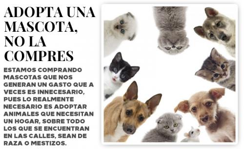 Ante ello, la activista sugiere que, definitivamente, estamos comprando mascotas que nos generan un gasto que a veces es innecesario, pues lo realmente necesario es adoptar animales que necesitan un hogar, sobre todo los que se encuentran en las calles, sean de raza, mestizos, de todo tipo.