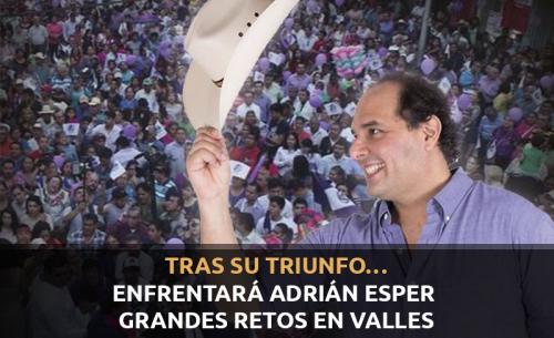 Así, Adrián Esper hizo su campaña y llegó a la contienda el 1 de julio, con la seguridad de que su proyecto ciudadano había encontrado eco en los vallenses, lo cual fue confirmado en los resultados finales dados a conocer por la autoridad electoral, aun cuando la diferencia sobre el segundo lugar fue mínima.