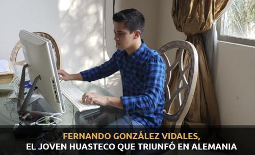 Fernando González Vidales es un joven huasteco de 21 años, hijo de Juan Carlos González Romero y Pilar Vidales estudiante de la carrera de Ingeniero Mecánico Electricista en el TEC de Monterrey, que destacó en sus estudios y fue seleccionado para un intercambio en Alemania para estudiar y trabajar.