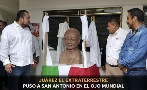 El busto de Benito Juárez develado en San Antonio con motivo del aniversario de su natalicio, ocasionó todo tipo de memes y burlas en las redes sociales, debido a que no tiene parecido con el ex Presidente de México y más bien es considerado como un ser incluso de otro planeta, denominándolo extraterrestre o intergaláctico, pero esta peculiaridad ocasionó que precisamente se pusiera al municipio en el ojo mundial, lo cual ahora será explotado turísticamente por las autoridades locales.