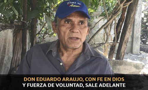 Eduardo Araujo Vázquez, tiene 61 años de edad, es originario de Cd. Valles, presenta una discapacidad, secuela de una enfermedad que no se trató correctamente en su juventud; sus padres tenían la creencia de que era brujería, ya que la enfermedad se manifestó sin síntomas previos como fiebre o malestares físicos, sólo que un día al levantarse le comenzó a doler la pierna. Fue hasta muchos años después que lo llevaron con un traumatólogo quien le dijo que quedaría paralítico.