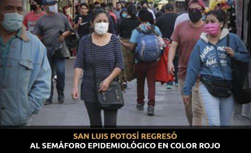 Desde el 25 de enero San Luis Potosí volvió al semáforo rojo, con alto riesgo de contagio... los números han ido cada vez al alza. De acuerdo al reporte diario del Consejo Estatal para la Seguridad y la Salud, en las últimas horas se registraron 440 casos nuevos en San Luis Potosí; colocando a la entidad en 46 mil casos 143 contagios.