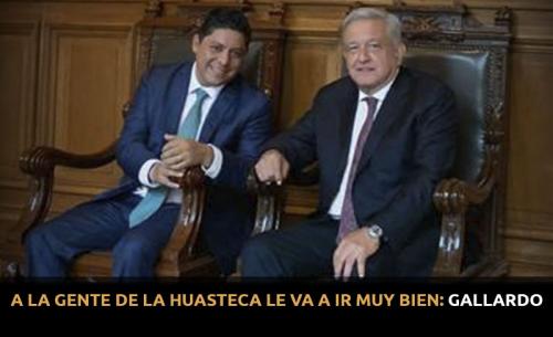En este caso a la Huasteca Potosina le va a ir muy bien, pues Gallardo Cardona precisó que se va terminar la carretera Valles-Tamazunchale, que nada más la dejaron en 8 kilómetros; el aeropuerto en Tamuín, que va a ser todo el detonante de la región, y al que el Gobierno del Estado le va agregar paradores turísticos y baños públicos, para que los visitantes tengan una infraestructura adecuada.