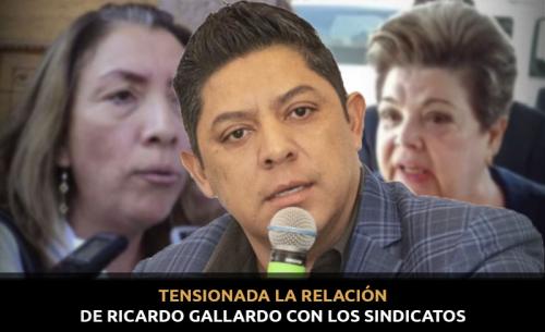 Esta relación tensionada no debería ser contra Ricardo Gallardo, ya que todavía no asume el gobierno, sino contra Juan Manuel Carreras; sin embargo, a pesar que Gallardo todavía no es Gobernador, formalmente no ha tomado la protesta constitucional, ha recibido ya señalamientos muy directos por parte de as dirigentes sindicales donde básicamente lo que hacen es enseñarle un poquito "los colmillos" y advirtiéndole que no están dispuestos a ceder los privilegios en las cuestiones que han ganado a lo largo de los años.
