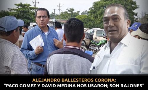 Respecto al trato que ha tenido con Francisco Gómez y el cumplimiento a algunos compromisos, reconoció "definitivamente no es de confianza, porque es una persona con la que trabajamos para la campaña de David Medina, obviamente me van a decir que no te le pegues a David Medina, porque eres un cáncer, toda esa publicidad negativa que le han hecho a Alejandro Ballesteros como representante del sindicato, pero quiero decir que independientemente los trabajadores del Sindicato DAPA trabajamos para la campaña de David Medina Salazar a través de Francisco José Gómez Faisal".