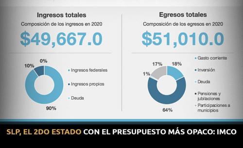 San Luis Potosí es el segundo estado que peor transparenta su presupuesto anual, de acuerdo con el Barómetro de Información Presupuestal Estatal (BIPE), que periódicamente publica el Instituto Mexicano para la Competitividad.