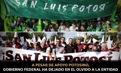 A pesar de apoyo potosino, Gobierno federal ha dejado en el olvido a la entidad
