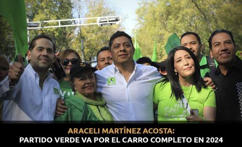 El Partido Verde Ecologista de México se prepara desde ahora para las elecciones del 2024, así lo confirmó su Presidenta Estatal Araceli Martínez Acosta, quien afirmó "estamos trabajando muy duro, efectivamente la meta tiene que ser las 58 alcaldías, todos los distritos locales, todos los federales también, creo que hoy tenemos todo para poder lograrlo, creo que hoy tenemos todo para lograrlo y la meta tiene que ser alta, vamos a ver, con el favor de Dios, que es el que nos concede que podamos lograr, estamos trabajando para hacer un análisis y asignando tareas específicas en cada lugar".