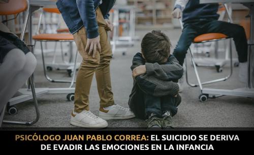 Entrando en el tema de todo lo que gira en torno al suicidio, que es la tercera causa de muerte a nivel global, Juan Pablo Correa explicó "un punto muy importante, he hablado mucho acerca de lo que es salud mental, pero creo que hemos dejado a un lado concientizar desde el proceso de desarrollo de los niños, de 0 a 10 años, que es cuando tenemos que enfocarnos a brindar las herramientas necesarias a los padres de familia sobre cómo deben educar o tratar con amor a los niños, porque si nos damos cuenta, si hacemos un análisis, podemos descubrir que tenemos conceptos muy erróneos respecto a lo que es la crianza, por la misma manera en la que a nosotros nos enseñaron: gritos, golpes, regaños, y al final de cuentas todo eso en cierto momento llega a tener sus consecuencias".