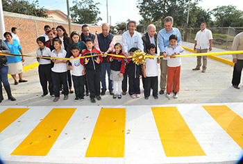 Continuando con su agenda de trabajo, entregó a las familias del municipio la pavimentación de la calle Rivera-Trampolín con concreto hidráulico estampado, así como el adoquinamiento del paraje El Trampolín, en la Delegación de Agua Buena, con una inversión de 1 millón 971 mil 314 pesos.