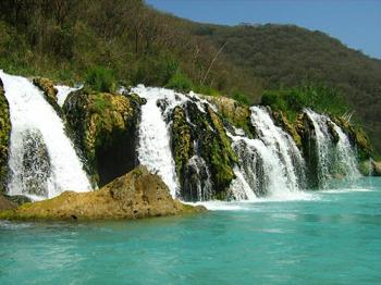 De ese lapso un buen recuerdo puede ser –si la elevación del agua lo permite y el turista así lo elige- pasar debajo de la regadera natural que se forma por escurrimientos que vienen desde sierra arriba y que se convierten en pequeñas cascaditas, tan singulares que el solo hecho de admirarlas en todo su esplendor, ya es de por sí una recreación. Hay que tener cuidado con el daño que la humedad pueda causar en las pertenencias.