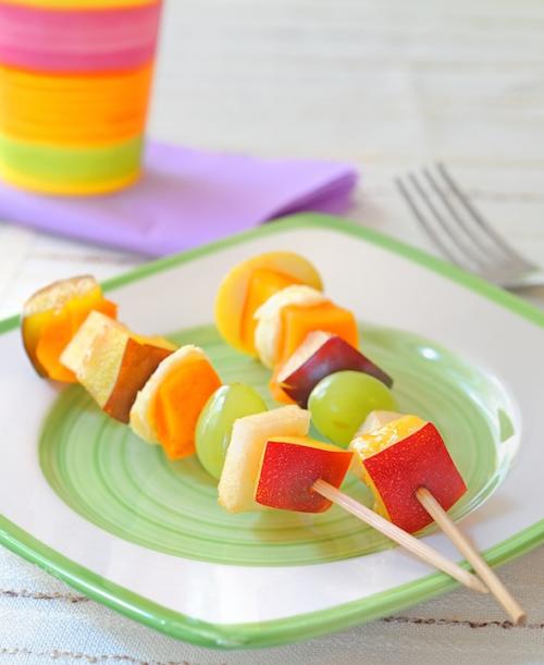 Colocar las frutas en los palitos para brocheta alternándolas.