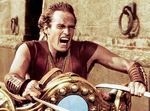 Durante la filmación de la gran película épica Ben Hur, Heston trabajó largas horas con los entrenadores para aprender a manejar un carro para la escena crucial de la carrera de carros. Mejoró mucho su manejo de los caballos y el carruaje., pero finalmente se convenció que la tarea era un desafío mayor de lo que había previsto inicialmente. Se aproximó al legendario director de la película, Cecil B. De Mille para hablarle acerca de la escena.