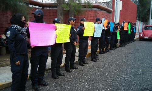 Los efectivos pertenecen a la asociación civil Hermandad de Policías del Estado de San Luis Potosí, y algunos vestidos de civil y otros portando el uniforme de la corporación, provenientes también de la Huasteca, pedían la homologación salarial, que se les adeuda desde hace 4 años.