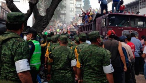 La secretaría de la Defensa Nacional anunció desde la tarde del martes 19 de septiembre, la puesta en marcha del Plan DN-III-E de auxilio a la población civil tras el sismo que sacudió el centro de la república causando daños de consideración en municipios de Morelos, Puebla y parte de la ciudad de México. Coordinados por el jefe de Estado Mayor de la Defensa Nacional, y con efectivos del Primer Cuerpo del Ejército y de la Primera Región Militar, además de unidades de rescate de la Armada, los militares se sumaron a las labores de rescate en las horas más difíciles cuando todavía había gente y niños atrapados bajo los escombros.
