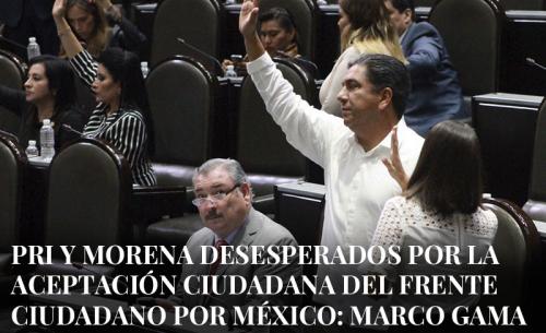 El Frente Ciudadano por México integrado por el PAN, PRD y Movimiento Ciudadano (MC), ha sido muy bien recibido por la ciudadanía y eso ha provocado la desesperación del PRI y Morena que por todos los medios están atacando este proyecto, manifestó el Diputado Federal por Acción Nacional, Marco A. Gama Basarte.