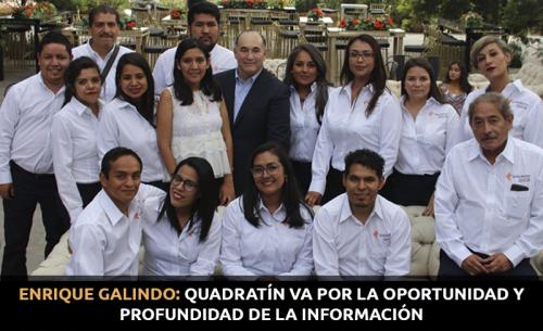Al cumplir el primer aniversario, el Presidente del Consejo Editorial, Enrique Galindo Ceballos, afirmó que Quadratín San Luis Potosí tiene como metas principales lograr oportunidad y profundidad en la información, a través de sus plataformas digitales y también el semanario impreso que comenzó a circular en la entidad desde la semana pasada.