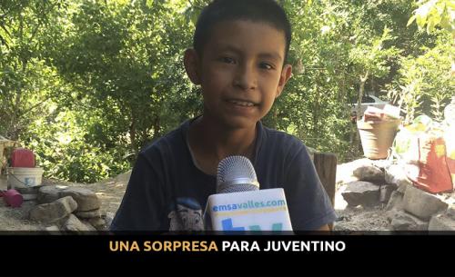 Al conocer su historia a través del reportaje de Emsavalles, una gran cantidad de personas decidieron ayudarle, regalándole calzado, útiles escolares, mochilas, ropa y víveres. Una sorpresa que Juventino no esperaba. Hasta su hogar le fueron llevados todos los regalos, siendo recibidos por Juventino y su familia.