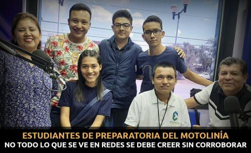 Tratando de que los alumnos del 6to semestre de Bachillerato en el Instituto Motolinía, se adentren en el mundo de los medios de comunicación, en la materia de Ciencias de la Comunicación, se pretende que los jóvenes estudiantes se involucren en este aspecto, vayan más allá de las 4 paredes de un aula académica, y conozcan presencialmente la radio y sus funciones, palpar y conocer un programa de radiodifusión un grupo de alumnos visitó este sábado el noticiero de Emsavalles.com, dirigidos por la maestra Betty.
