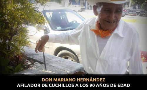 a sus 90 años, don Mariano Hernández sale todos los días a las calles de la ciudad a ofrecer sus servicios como afilador de cuchillos, a cambio de una módica cantidad.